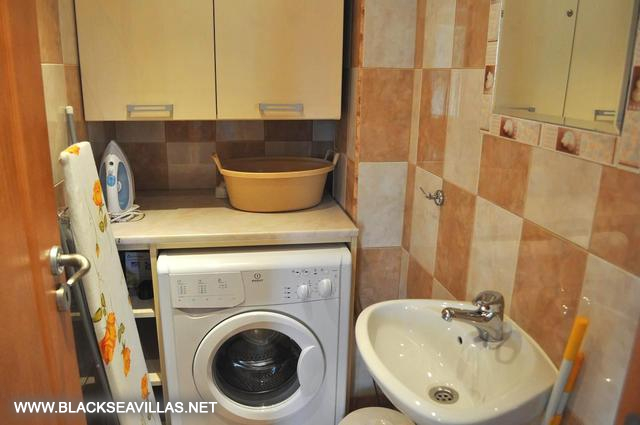 Вилата се простира на 2 етажа с частен басейн с детска секция, разположен отляво на къщата. Приземният етаж се състои от компактна всекидневна с напълно оборудвана кухня, удобна трапезария с 6 места и кът с мека мебел със сателитна телевизия. Кухнята предлага всички съвременни удобства - хладилник с фризер, фурна, 4 керамични котлона, аспиратор, съдомиялна машина, микровълнова фурна, тостер, ел. кана, всички прибори. За вашия максимален комфорт, на приземния етаж ще намерите и баня с душ. В допълнително мокро помещение на същия етаж е обособено място за пералната машина, ютията и дъската за гладене - изключително удобство, особено за групи с деца.
