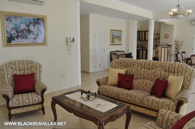 Villa Lily is een prachtige gelegenheid voor uw familievakantie op de noordelijke kust van de Zwaarte Zee. De villa zal u verrassen met haar prachtige locatie in een rustige villawijk tussen Balchik en Albena, op een afstand van slechts ongeveer een kilometer van de kust. Met zijn 250 vierkante meter woonruimte, Lily is het perfecte vakantiehuis voor uw familievakantie in Bulgarije. Alle faciliteiten voor kinderen zijn voorzien- kinderbad, een hoge kinderkruk, babybed - zodat de gasten van een probleemloze vakantie kunnen genieten. De hulpbereidheid van de villa manager zorgt voor uw problemloze verblijf in Bulgarije. Villa Lilly is van 2 verdiepingen, met een mooie en goed onderhouden tuin en zwembad in het hof. De begane grond van het vakantiehuis bestaat uit een grote salon – woonkamer met een volledig ingerichte keukenbox, een eettafel met 8 stoelen, een aparte slaapruimte met tweepersoonsbed en een aangrenzende badkamer en apart toilet. In de keuken zijn tot uw beschikking 4 keramische kookplaten, fornuis, grote koelkast, aspirator, vaatwasmachine, wasmachine, magnetron, broodrooster, koffiemachine en elektrische waterkoker. Op de bovenverdieping zijn er 3 andere kamers - elk met een aparte badkamer en een klein terrasje. Twee van de slaapkamers zijn voorzien met twee eenpersoonsbedden en de derde met een tweepersoonsbed. De sofa in de woonkamer biedt nog plaats voor twee personen, waardoor de maximale capaciteit van het huis tot 8 personen + 2 kinderen wordt.