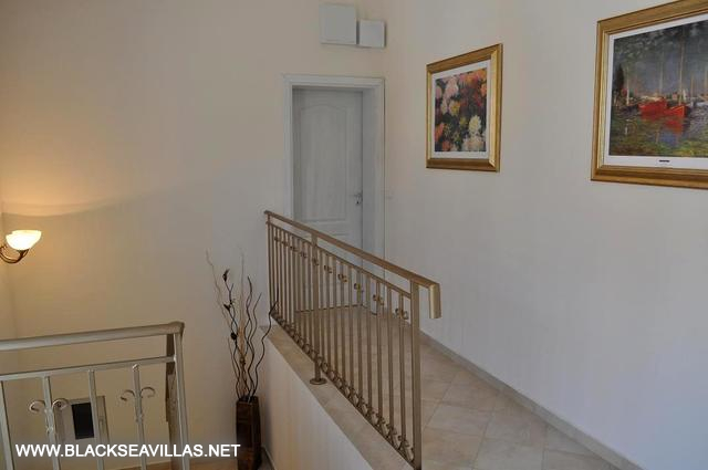 Uşa de intrare a vilei se deschide spre antreul etajului doi, unde se află 3 din dormitoarele – fiecare cu baie şi un balcon mic, din care puteţi să savuraţi priveliştea răsăritului sau apusului asupra casei. Pe acest etaj unul dintre dormitoarele este amenajat cu pat dublu, iar celelalte doua – cu câte 2 paturi single, care pot fi puse împreună sau separate în funcţie de preferinţele Dvs. Amenajarea suplimentară a dormitoarelor include garderobă dublă, toaletă cu oglindă, noptiere cu lămpi. Toate băile pe etajul doi sunt amenajate cu căzi, monobloc, chiuvetă cu oglindă.